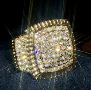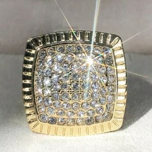 Yellow Gold Simulated Diamonds Ring for Men