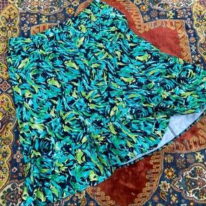 R.Q.T green and blue swirl cotton spandex midi skirt. Zipper on the side. Preloved but in perfect used condition with no flaws.
