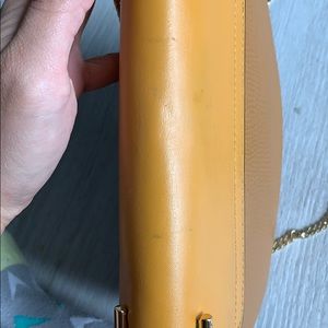 Mustard yellow Chloe drew. Color block. Top and body are different shades of yellow. Smooth leather cover and pebbled lamb leather body. Inside is a tan suede. Has holographic sticker to show authenticity. Gold hardware. There is a little wear on the front lock. Not noticeable when worn. Please see pics. Slight marks on top. Can be crossbody or on shoulder.