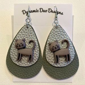 Faux Leather Silver & Grey Cat ๐โโฌ Earrings