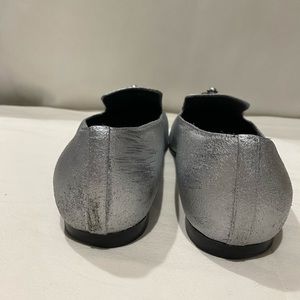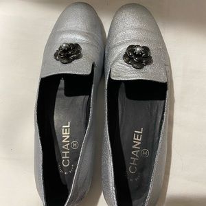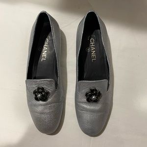 Chanel silver leather loafers