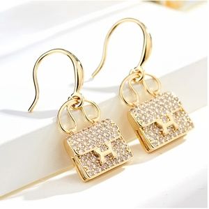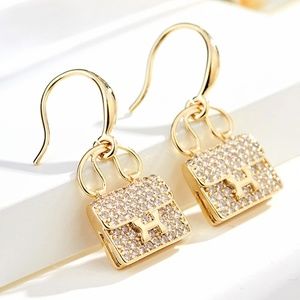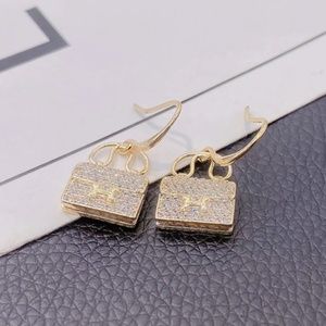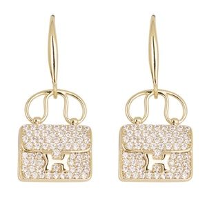 NEW Luxury Gold Plated Zircon Bag Shape Earrings