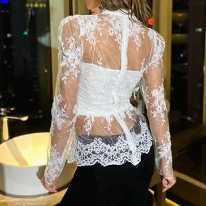 Black Floral Embroidered Sheer Babydoll Blouse