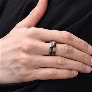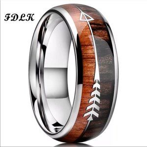 New 8mm Tungsten Koa Wood Arrows Inlay Band Ring