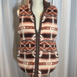 Super cute reversible vest featuring Aztec Sherpa on one side and quilted purple on the other!
