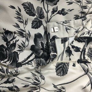 Express Womens Stretch Pants Sz 1 / 2 Off White Black Floral Print Inseam 25"