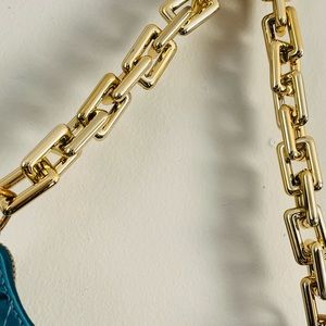 New/Never user croc print handbag. Photo shows inside of bag which is flat black with no pockets. There is no secondary strap, only the gold link chain. Measures approximately 9 1/2 inches long.