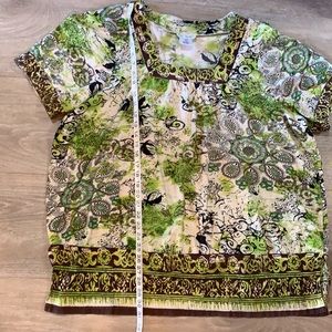 This multicolor top is very comfortable to wear in any season. Used but in good condition.