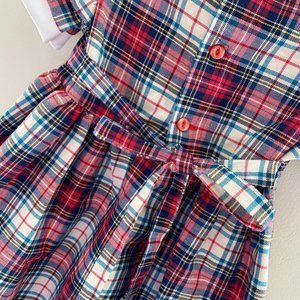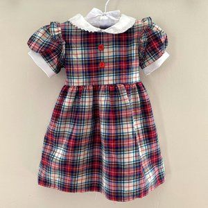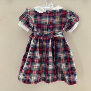 Glen Appin of Scotland Plaid Holiday Dress. Baby toddler girl size 18 months. Traditional plaid pattern with contrasting white peter pan collar. Short sleeves. Sash to tie a bow in the back. Works for Thanksgiving, family photos, a Christmas party, and more!