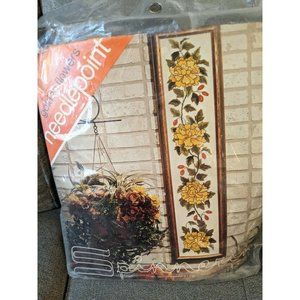 Vintage Spinnerin Needlepoint Kit Golden flowers Marjorie Gosc 8 W x 40" H. New and unopened