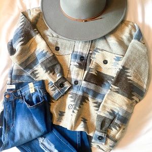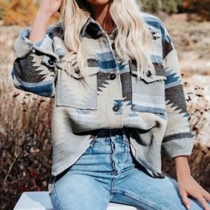SOLD OUT Eldora Aztec Tribal Distressed Western Shacket Shirt Button Up Jacket