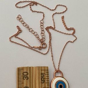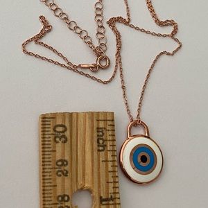 14k rose gold plating over 925 sterling silver handmade white blue black enamel lucky charm evileye necklace for girls or women in free gift box