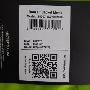 Arc'teryx Men's Beta LT Jacket Lightweight Gore-Tex Pro Shell Utopia Green M