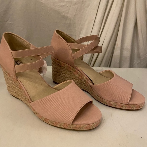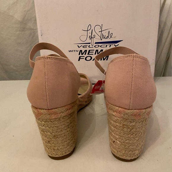 Life Stride blush canvas wedge shoes with peep toes , ankle straps size 10 NWT