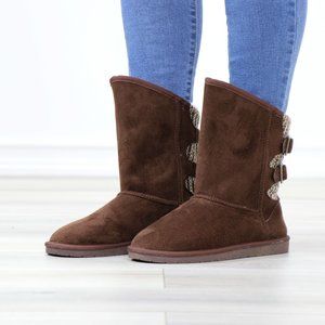 Brown Winter Warm Sherpa Lining Inside No Heel Mid Calf Flat Boots