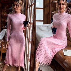 Fall mock neck ribbed knit sweater midi dress Pink ( Various sizes )