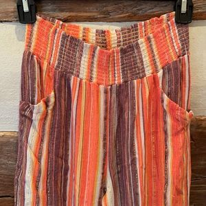 P.J. Salvage rayon striped loungewear pants, elastic waist with pockets, orange/gold stripe, size 8, excellent condition, inseam 29