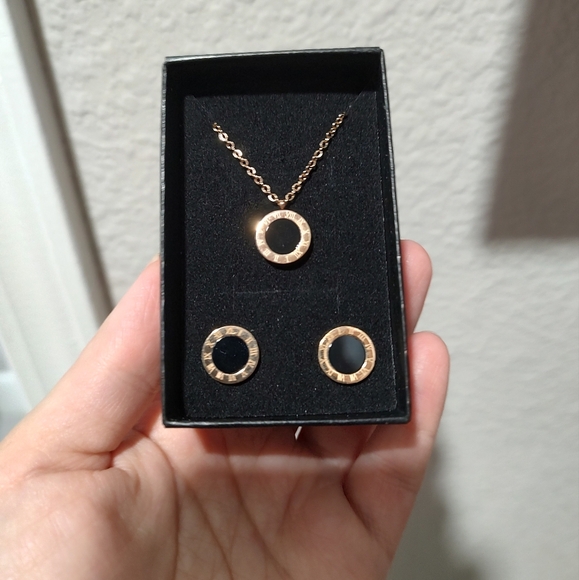 Elegant Set Necklace and Earrings Roman Numerals