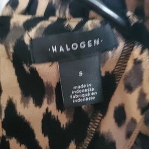 Halogen Ruffle Neck Top In Taupe Animalia Print