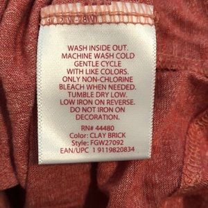 Tunic length tank top in a desert rose color. Tag calls the color ‘Clay Brick’. Sequin and stone embellishments. V neck.
