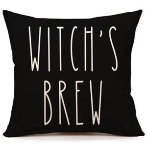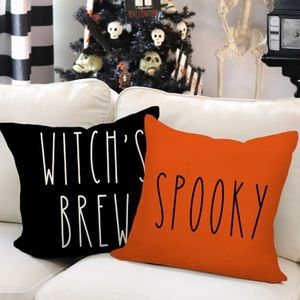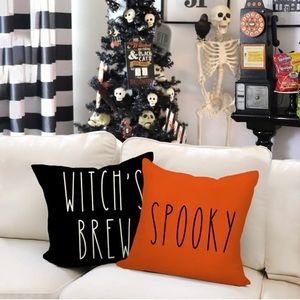 NEW - SET of 2 Large cute pillow covers - SPOOKY is Bright Orange with black lettering & tan on backside and WITCH’S BREW - is black w/white lettering & tan on backside