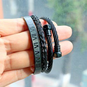 Brand New Stainless Steel Bracelets & Bangels Color Black 3 Piece Set