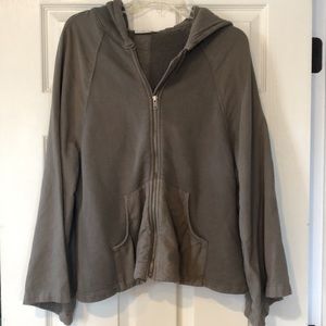 Gently used good condition hoodie zip up from ag jeans. Slight snag as pictured. Loose fit and dolman sleeves. About 19” wide and 23” long.