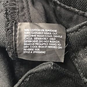 Approximate measurements (laid flat): Waist 15.25”, hips 18.5”, front rise 9.5”, back rise 12”, inseam 34”