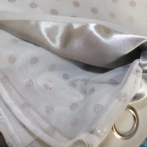 These shimmering window panels are stunning. They have a thick satin feel lining with a sheer overlay with a colorful shimmer.