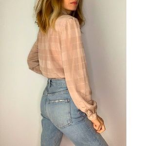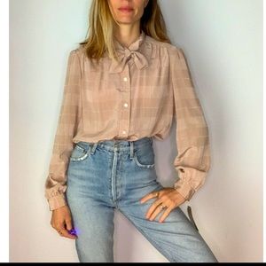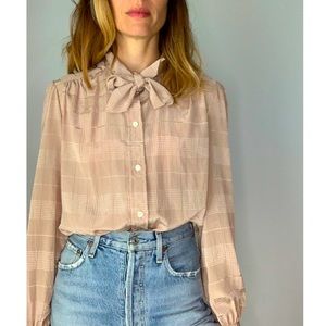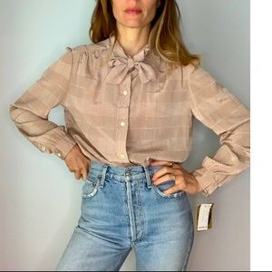 NWT Vintage Dead Stock Pussy Bow Beige Blouse