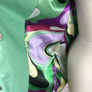 EUC - Dennis by Dennis Basso Green Raincoat - Very Unique Silver Closures - see pics