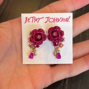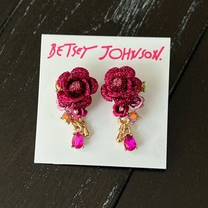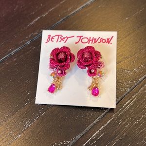 Beautiful Betsey Johnson Earrings, gorgeous glitter rose detail and crystals, approx. drop 1-1/4”. New with tag. Gold tone.