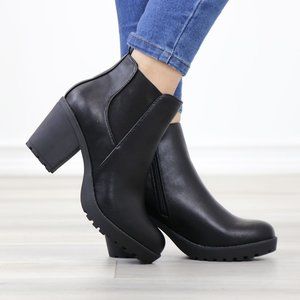 Chelsea Chunky Block High Heel Ankle Boots Black Synthetic Leather