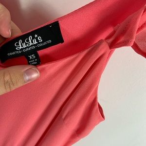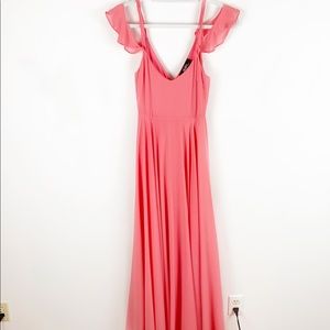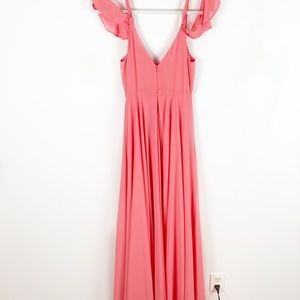 Lulu’s romantic coral pink maxi dress. Beautiful sleeves. Perfect condition. Flutter sleeves. Very flowy. Fit & flare.