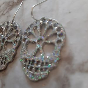 Beautiful sugar skull earrings with sparkly glitter detail.