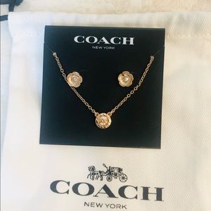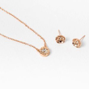 This delicate necklace and earring set in rose gold-plated brass is a must-have for any jewelry lover.