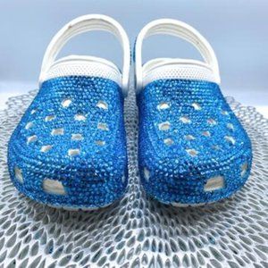 Bling Aqua Blue Rhinestones Studded Customized Clogs Adults