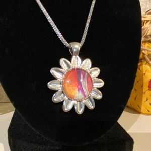 NWOT Abstract fluid pour wearable art sunflower pendant reversible necklace