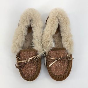 Anthropologie Far Away From Close Fur Lined Moccasin Slippers.
