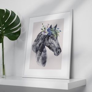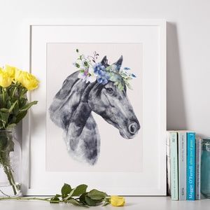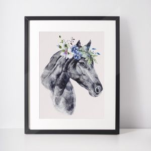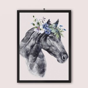 TAGS: Cute Animal Portrait, Nursery Decor, Modern Wall Art, Physical Art Prints, Animal Portrait, African Jungle, Tropical Art Prints, Watercolor Floral, Nature Art Prints, Horse Art Poster, Watercolor Horse, Black Horse Portrait