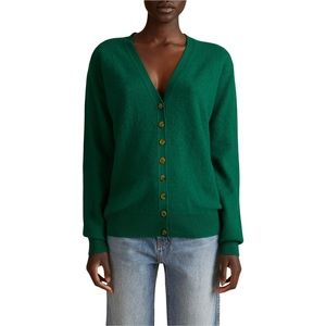 Khaite Amelia V-Neck Cashmere Button Front Raglan Cardigan In Green Size XS
