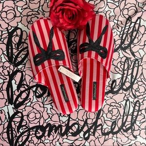 🆕Victoria’s Secret Classic Stripe Satin Sequin Embellished Bow Slipper