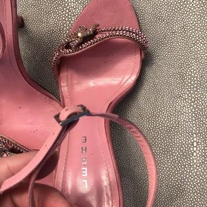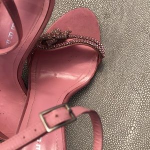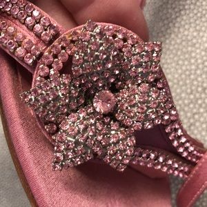 LERRE Handmade in Italy Pink Silk 3.5” heel Rhinestone Flower Size 37 Sandals