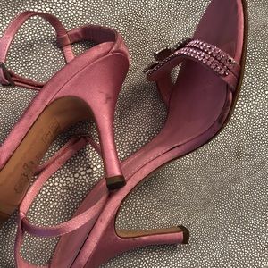 Handmade in Italy Beautiful Pink Silk High Heel 3.5” Cocktail Sandal, Rhinestone Flower in the front, most gorgeous detail, Size 37