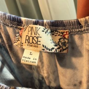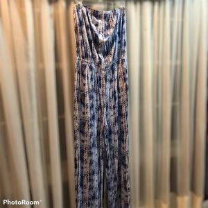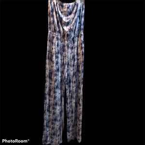 Beautiful Pink rose vintage Women Off Shoulder Strapless Jumpsuit, white&Blue, Size Large ,