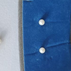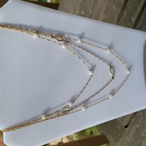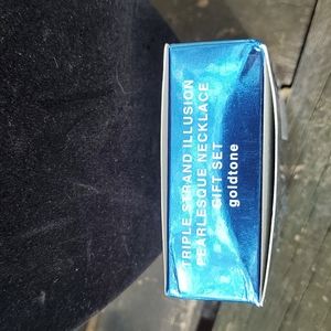 Avon; pearlesque and gold necklace and pearlesque stud earrings; adjustable length; still in box