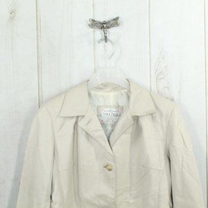 VERA PELLE Tan Leather Down Button with Collar Jacket Italy Made Size 46