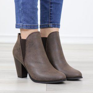 Chelsea Cone High Heel Ankle Boots Brown Synthetic Leather Pointed Toe