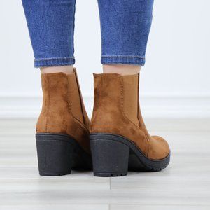 Chelsea Chunky Block High Heel Above Ankle Boots Brown Synthetic Suede