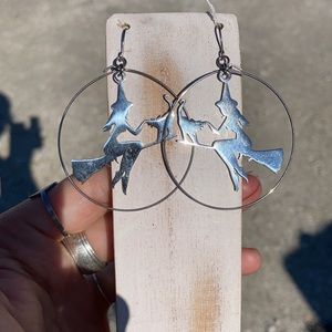 ๐โโฌ Stainless steel witch, cat, broom charm And ear hooks